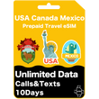 Calls & Texts: Unlimited Calls and Texts within USA, Canada & Mexico