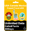 USA, Canada & Mexico Prepaid Travel eSIM Card - AT&T